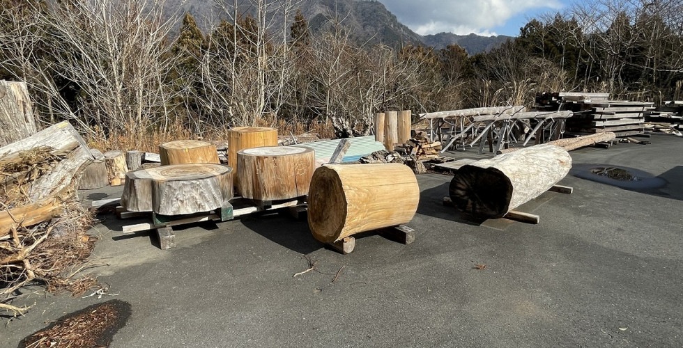 多摩川上流で木をまるごと一本あますところなく販売する試みをされている東京チェンソーズさんの乾燥場にある、普段流通しづらい山素材を活用してオフィス空間を作るご提案をしました。